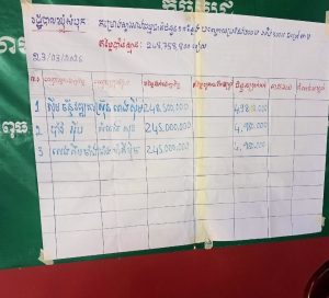 ប្រភពបានអះអាងថា ដំណើរការដេញថ្លៃមានភាពរញ៉េរញ៉ៃ មិនប្រកបដោយតម្លាភាព និងត្រូវបានគេសង្ស័យថា មានការចែកចាយ លុយទឹកតែ ជាង២០លានរៀល ដើម្បីបំបាត់ការប្រកួតប្រជែងរបស់ក្រុមហ៊ុនផ្សេងៗ នោះ..ដែលជាអំពើផ្ទុយនឹងច្បាប់ និងគោលការណ៍លទ្ធកម្មសាធារណៈយ៉ាងច្បាស់តែម្តង។